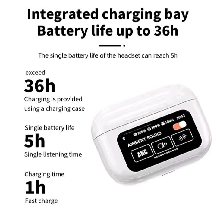 AURICULARES A9 PRO BLUETOOTH 5.4 CON PANTALLA TÁCTIL INTELIGENTE / ANC Y HASTA 36 HORAS DE BATERÍA