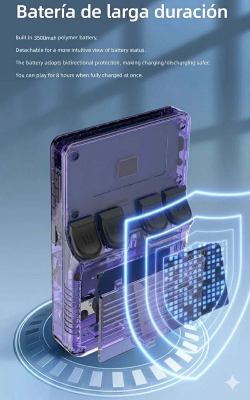 - Sistema operativo: Linux basado en ArkOS, compatible con múltiples emuladores y personalización técnica.