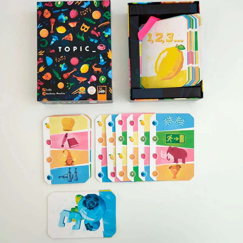 Topic es un juego de mesa dinámico y muy divertido en el que tendrás que decir palabras relacionadas con un tema antes de que se acabe el tiempo. Parece fácil… hasta que la presión aparece y el cerebro se bloquea 😏⏱️